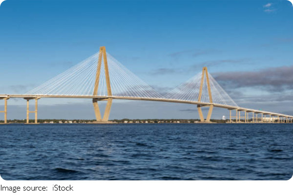 To further enhance stability, engineers used a combination of pre-stressed concrete and steel in the bridge's foundation, ensuring the base could support the weight of the deck and towers even under the harshest conditions. The foundations of the bridge are anchored into the Cooper River's bedrock at depths reaching up to 230 feet, making the structure as solid as it is elegant.