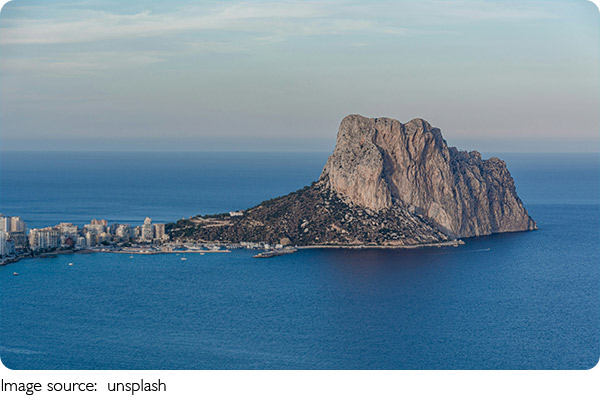 Calpe's principal beach is surrounded by a broad promenade. Quieter than neighbouring Benidorm. The beach is carefully maintained by the local authority, which sweeps it daily. Just such a gorgeous sweeping arc of a bay, with rocky outcrops further up and dropping to the sheltered beach, the maritime promenade on one side and the blue Mediterranean on the other. The promenade walkway, like the beach and its sands, is immaculately clean. Definitely worth staying here.