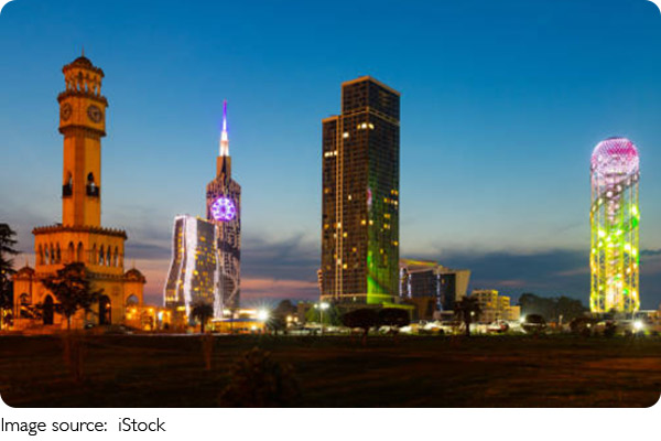 Chacha Tower is located near the Batumi Seaport and is easy to reach on foot or by public transport. It stands right beside the Alphabet Tower and is only a short walk from the city center.