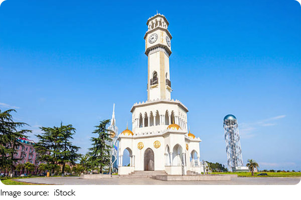 Located right by the seafront, this unique structure isn’t just a clock tower — it once had fountains that poured real chacha, Georgia’s famous grape-based spirit.