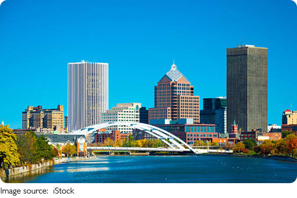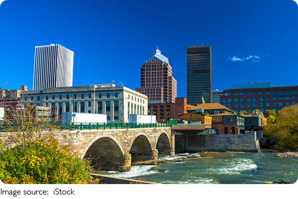 Rochester, located on the southern shore of Lake Ontario in New York State, is a unique city well known for its three waterfalls right in the heart of downtown.