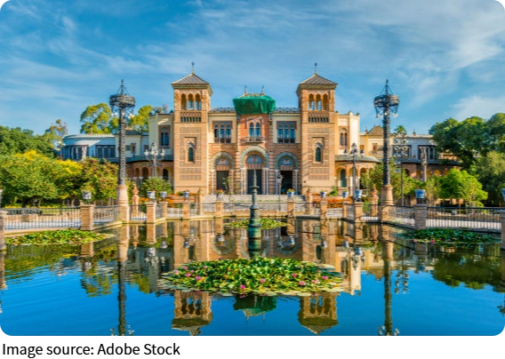 At the edge of the park sits the jaw-dropping Plaza de España, one of Seville's most photographed sites. Though it's not Moorish in origin (built in 1928), its horseshoe arches, ceramic tilework, and layout borrow heavily from special architectural themes.